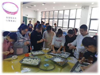在传统节日冬至时,我们一起包饺子,像家人一样团聚在一起。在中秋佳节来临时,大家收到了来自班委们送出的月饼,吃着甜甜的月饼,每个人的心里也甜甜的。在新年来临之际我们互相祝福,交换礼物,大家感受到了来自大家庭温暖。平日里,同学们互相关心、互相照顾,这些生活中的点点滴滴,让我们多了一种亲切,少了一些疏远;多了一丝关爱,少了一份陌生。无形之中,大家的心越靠越近,情谊越来越浓。