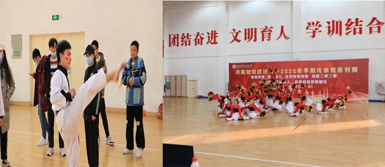 其中我支部雅五611寝室在新生素拓运动会中获得寝室一等奖,并在文明宿舍评选中脱颖而出,获得“文明宿舍标兵”的荣誉称号。刘世茂,陈慧鑫两位同学参加2020冬季阳光体育系列赛获得全校跆拳道一等奖,周文静、曹云楚、张静蕾、胡安琪、刘家凤五位同学参加2020冬季阳光体育系列赛获得全校啦啦操二等奖。刘世茂同学在新生运动会男子田径4乘100接力赛获得第六名的优秀成绩,并在竞技跆拳道53公斤比赛中获得第二名的优异成绩。在第十一期青年马克思主义者培养工程中,郭涵同学取得“优秀学员”的荣誉。陈悦扬同学报名河南省老员工校园美术作品大赛,王雨璇同学报名河南省老员工书法作品大赛。这些成绩的取得和我们各支部成员的努力是分不开的。