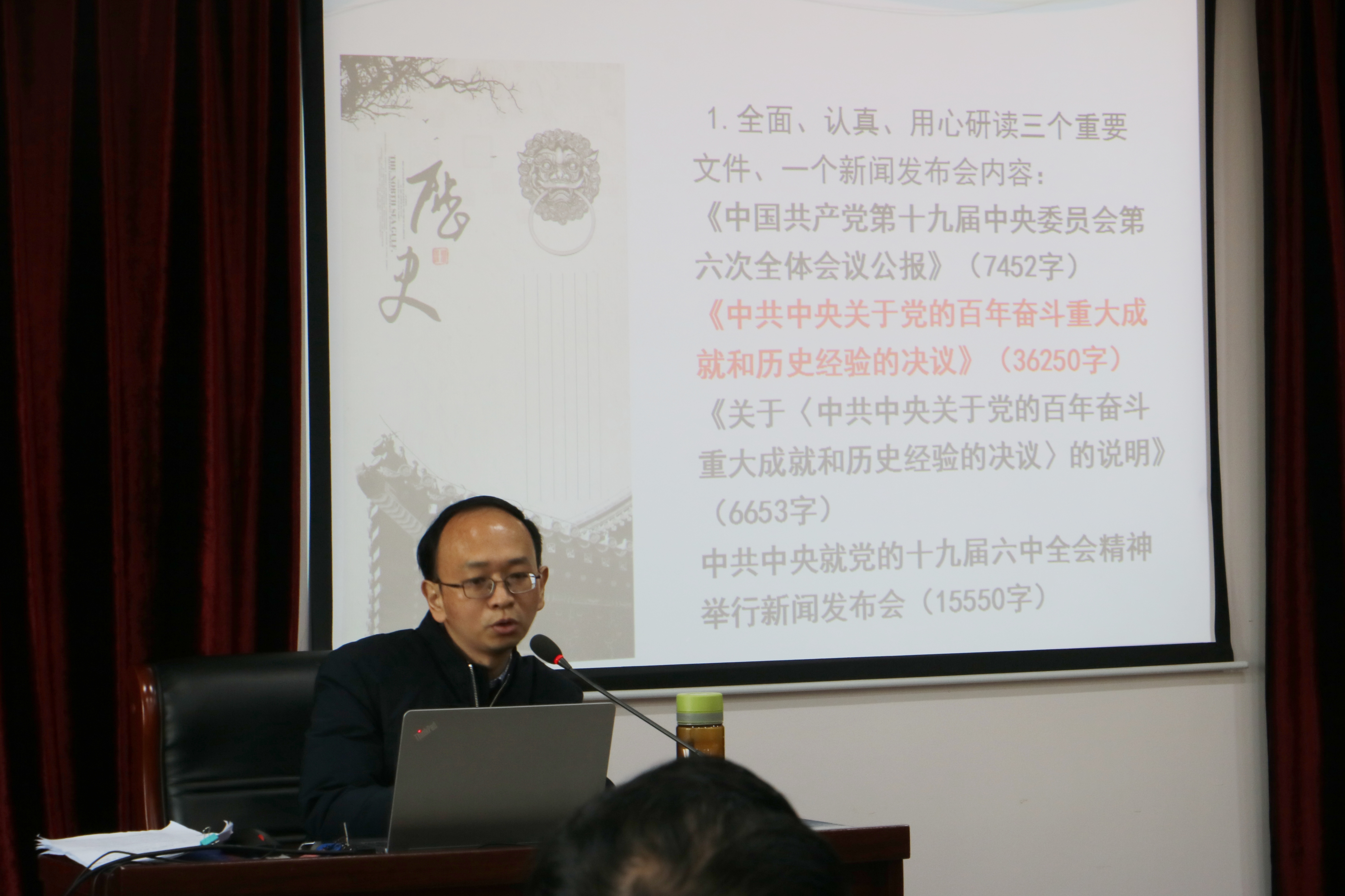 为响应公司党委的号召,贯彻落实党的第十九届六中全会精神,12月13日下午太阳成集团tyc151cc分工会在教学科研楼828会议室组织开展党的十九届六中全会精神宣讲活动。校十九届六中全会理论宣讲团讲师、马克思主义学院王昊博士主讲,公司工会会员全体参与,认真学习。
