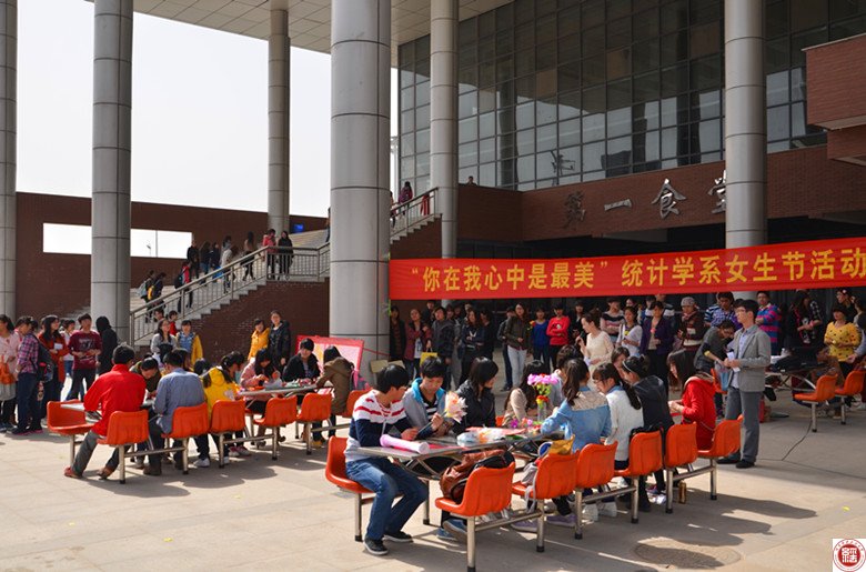 “三八”妇女节,统计学系组织“你在我心中是最美”为主题的女生节系列活动。3月7日男生集体骑车接送女生上下课,以此倡导关爱女性的理念;3月8日中午在第一餐厅门口进行折纸花活动,折纸达人现场教授折纸艺术,大家踊跃参与,一起动手,把折成的各种美丽纸花送给老师和女生,同学们表演了吉他弹唱等文艺节目,在欢乐温馨的气氛中,同学们度过了一个有意义而难忘的节日。