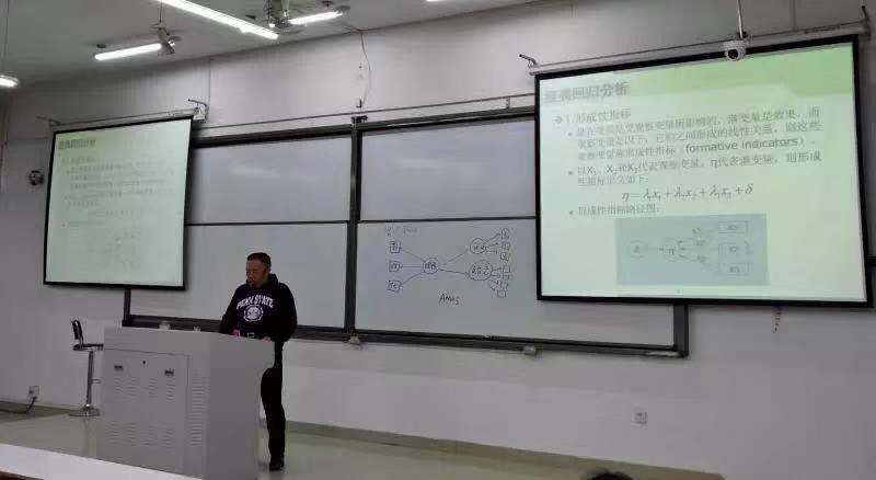 李保东在培训会上向同学们介绍了结构方程模型,并列举很多结构方程模型的实例,结合马斯洛层次需求模型讲解。就结构方程模型建模需求,讲解了问卷设计的技巧和方法,讲述了最常运用罗杰斯的理论,令同学们受益匪浅。