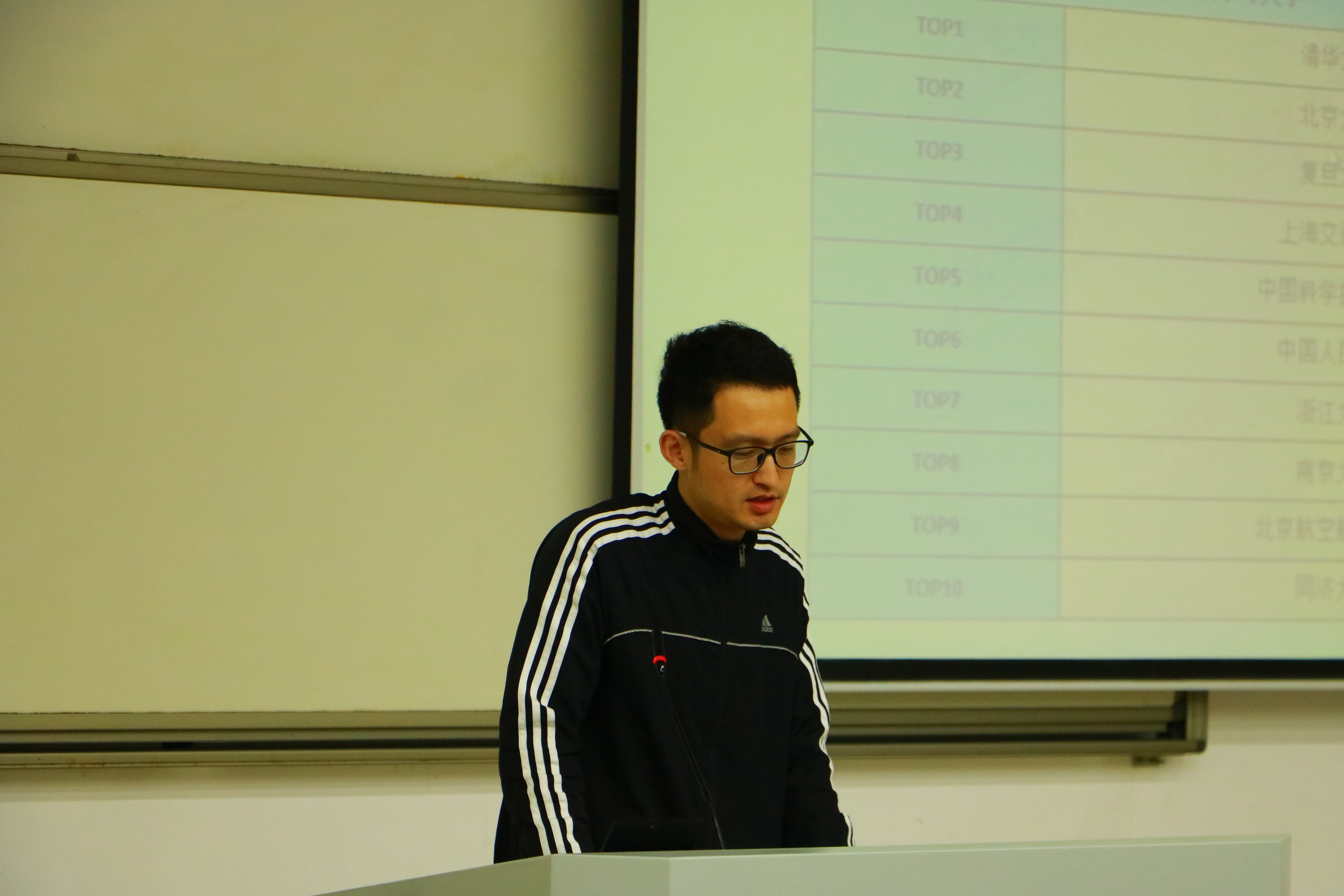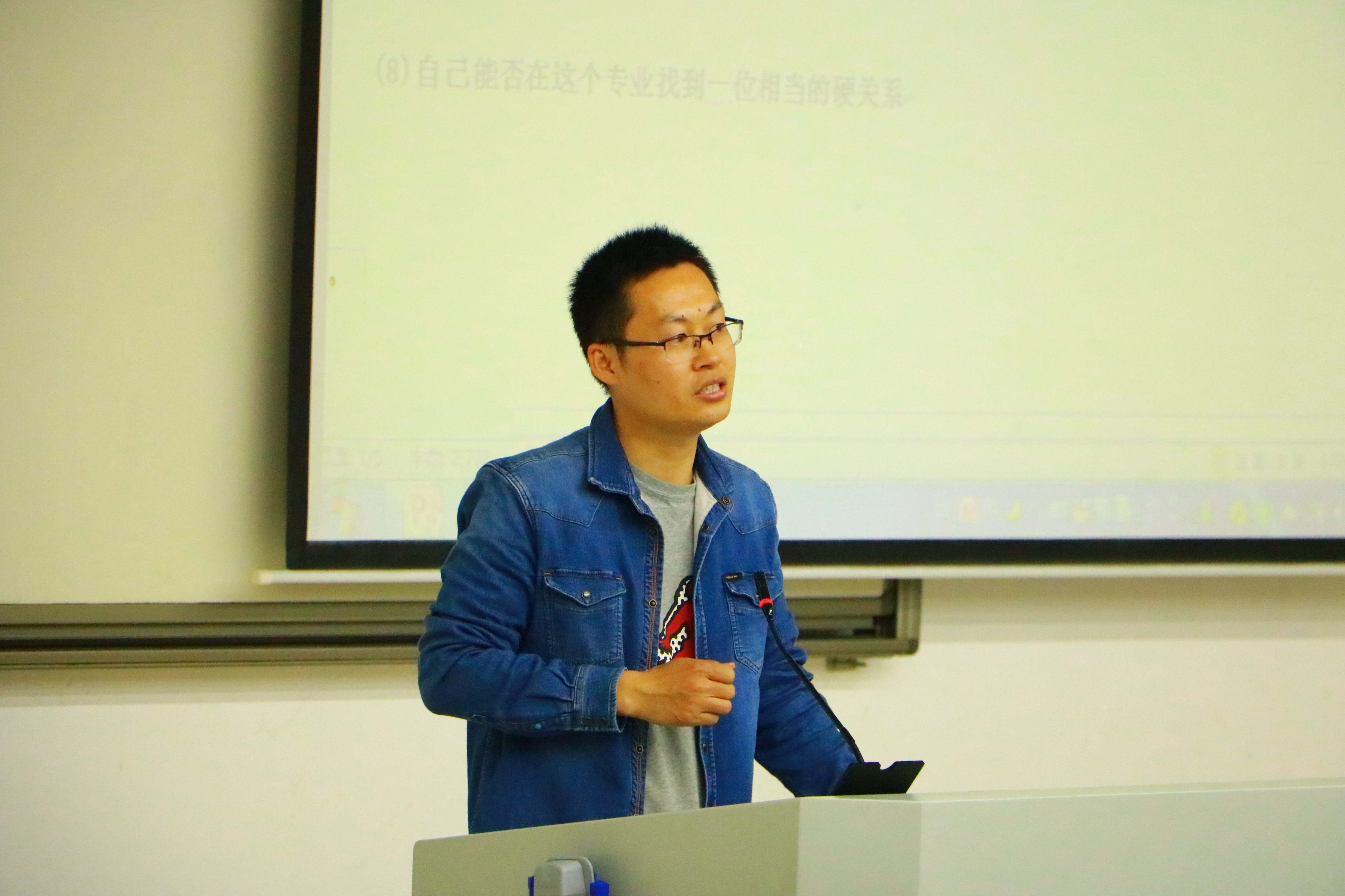 会上,杨文溥和刘子胜分别从宏观和微观两方面分享考研经验。杨文溥从选择报考学校、确定复习方法、考研面试、专硕和学硕的异同等方面展开介绍,说道考研是提升自己,找到好工作的跳板。同时就考研过程中各科目的具体复习向同学们分享经验。刘子胜关于考研的细节进行了多方面的补充,对跨专业、学校、地区考研的难易程度进行了简要分析,介绍到考研需要提前了解三个方面内容:目标学校的信息,考研科目的组成、占比、试卷结构,报名考试及公布成绩的时间,告诫同学们要做好考研的规划,关于考研科目复习教材给出建议。最后,王灿做出总结,告诫同学们需要提前决定是否考研,为考研做好充足准备。