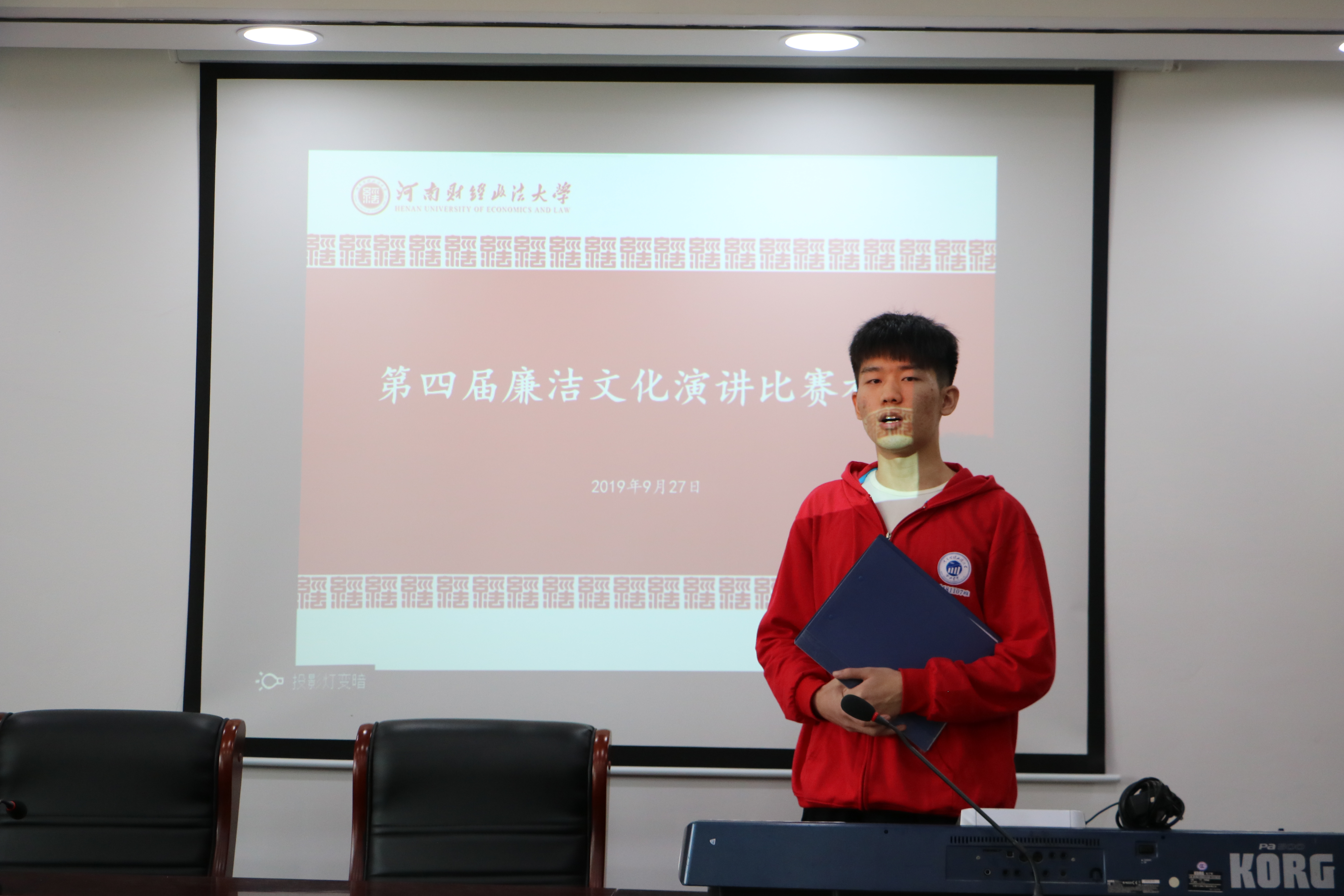 比赛伊始,主持人强调举办此次比赛的意义、注意事项及赛场纪律。每一只参赛队伍都做了充分的准备,他们紧密围绕主题,与校园生活相结合,阐述廉洁的内在含义,从社会上的贪官落马、为孩子跑关系到与我们关系密切的论文造假、抄袭风波,以此为例为我们敲响警钟,也以古今勤政廉明的清官优干、身边诚信守法的人物为榜样,将两者形成鲜明的对比,告诉我们作为一名老员工应该廉以修身、诚实守信,做好中国特色社会主义的接班人。