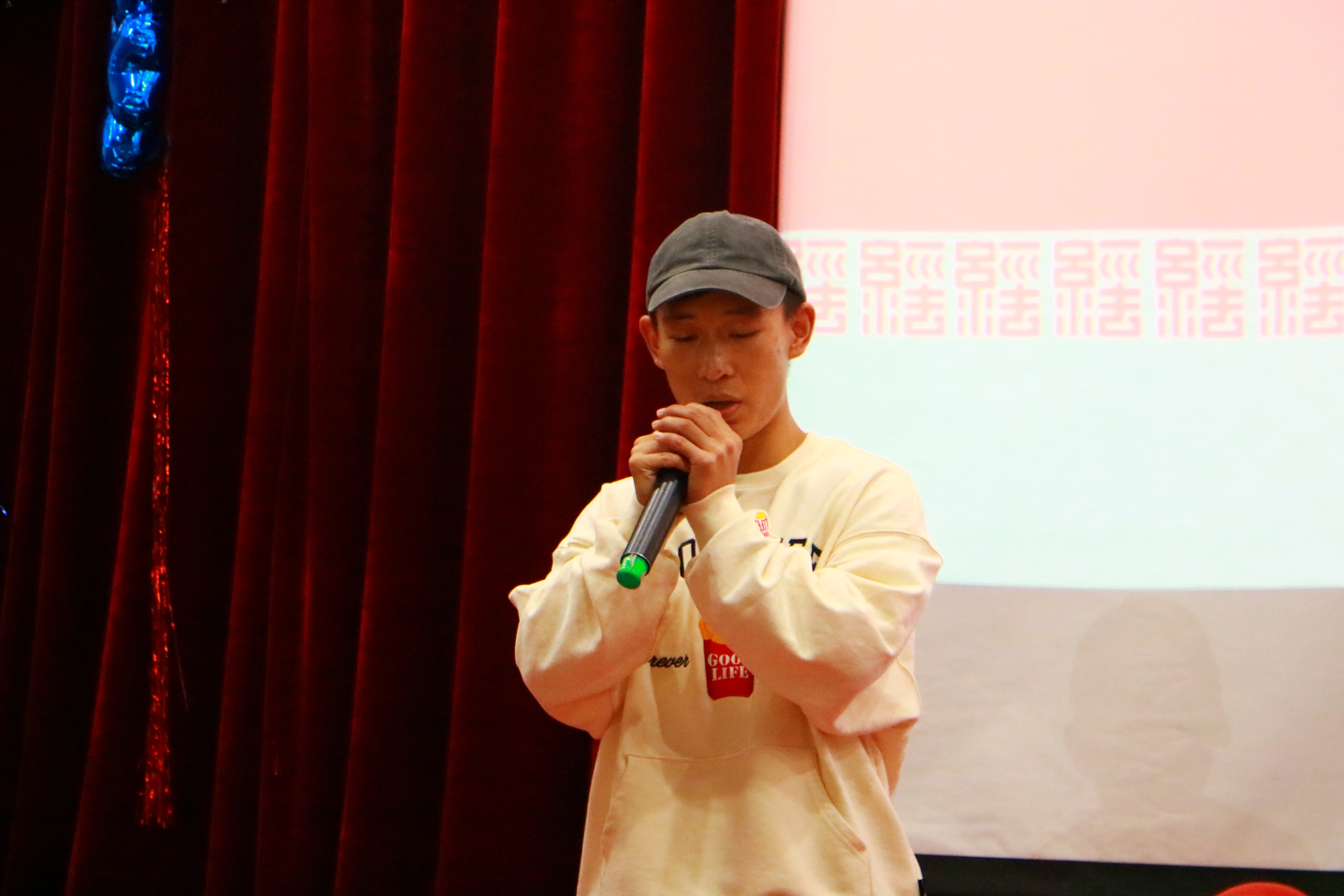 本次决赛分为帮唱和独唱两个环节。活动开始,比赛场面异常火爆,选手们一展歌喉,唱出激情和活力,将观众带入了一个全新的画面。观众们亦热情满满,不时爆发出热烈的掌声。帮唱环节过后,有6名同学进入独唱环节,再一次燃爆全场,经过激烈的角逐,王甲田同学获得冠军,亚军和季军分别由张一放和王一帆获得。本次比赛公平公正,由各位评委的加权分为最终结果。