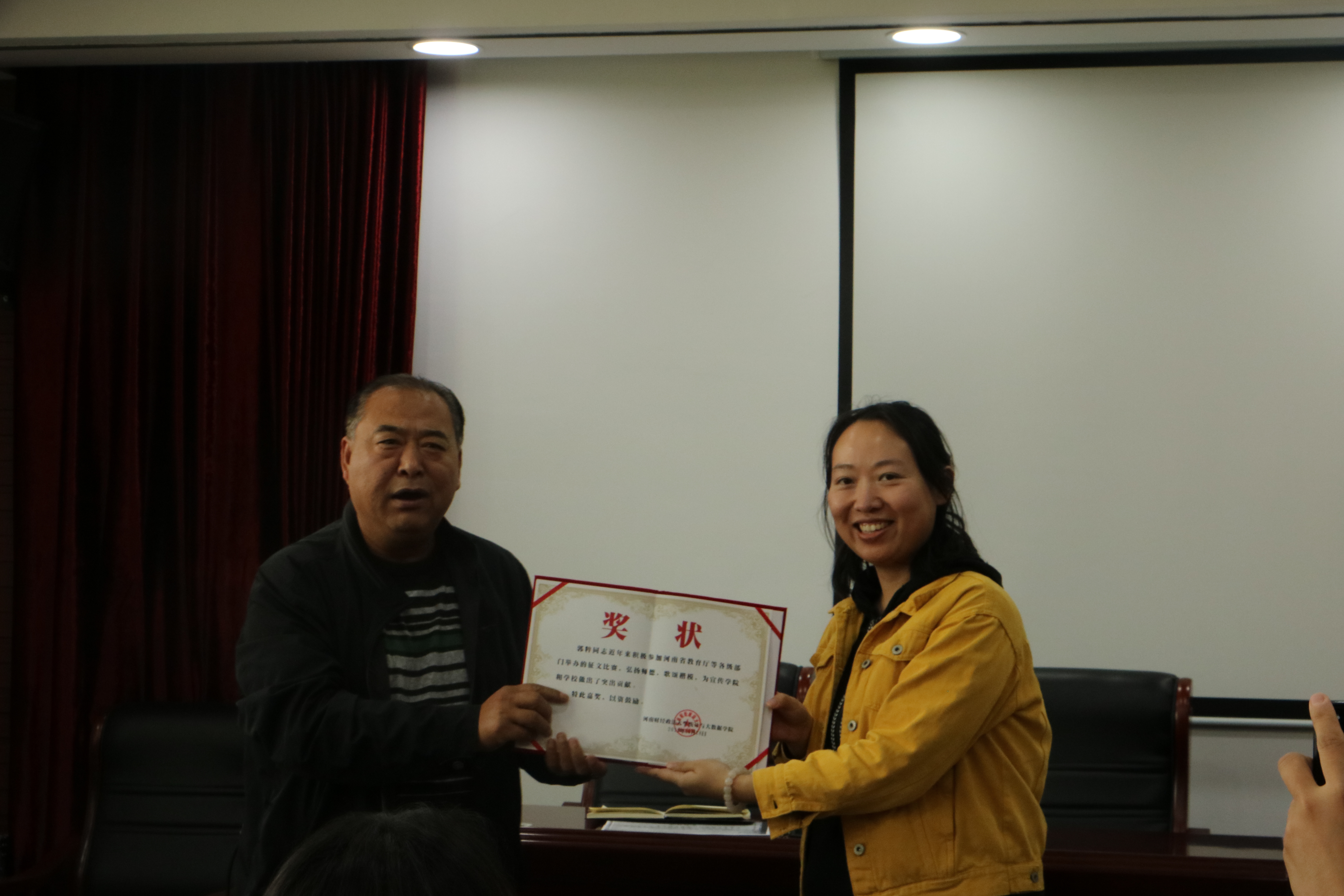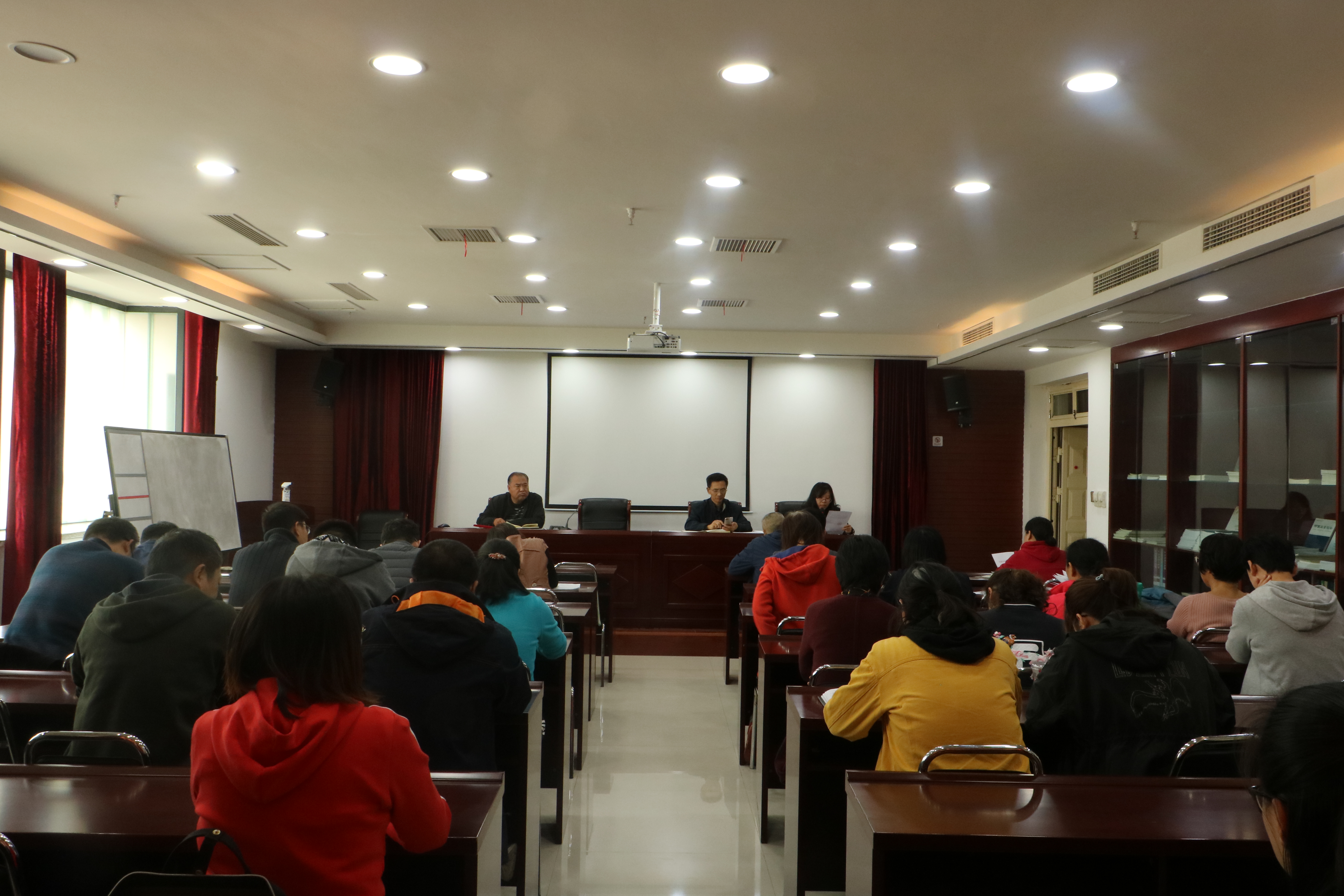 靳刘蕊宣读2019年公司一号文件《关于调整完善院内机构组成的决定》,明确了各部门、各教研室的负责人。苗彤彤宣读二号文件《关于表彰郭粹同志的决定》,肯定了郭粹对宣传学校和学院做出的突出贡献,并由徐金安为郭粹颁奖。随后,专业课教师进行了集体备课,研讨新版统计学教材《课程大纲》、《考试大纲》。