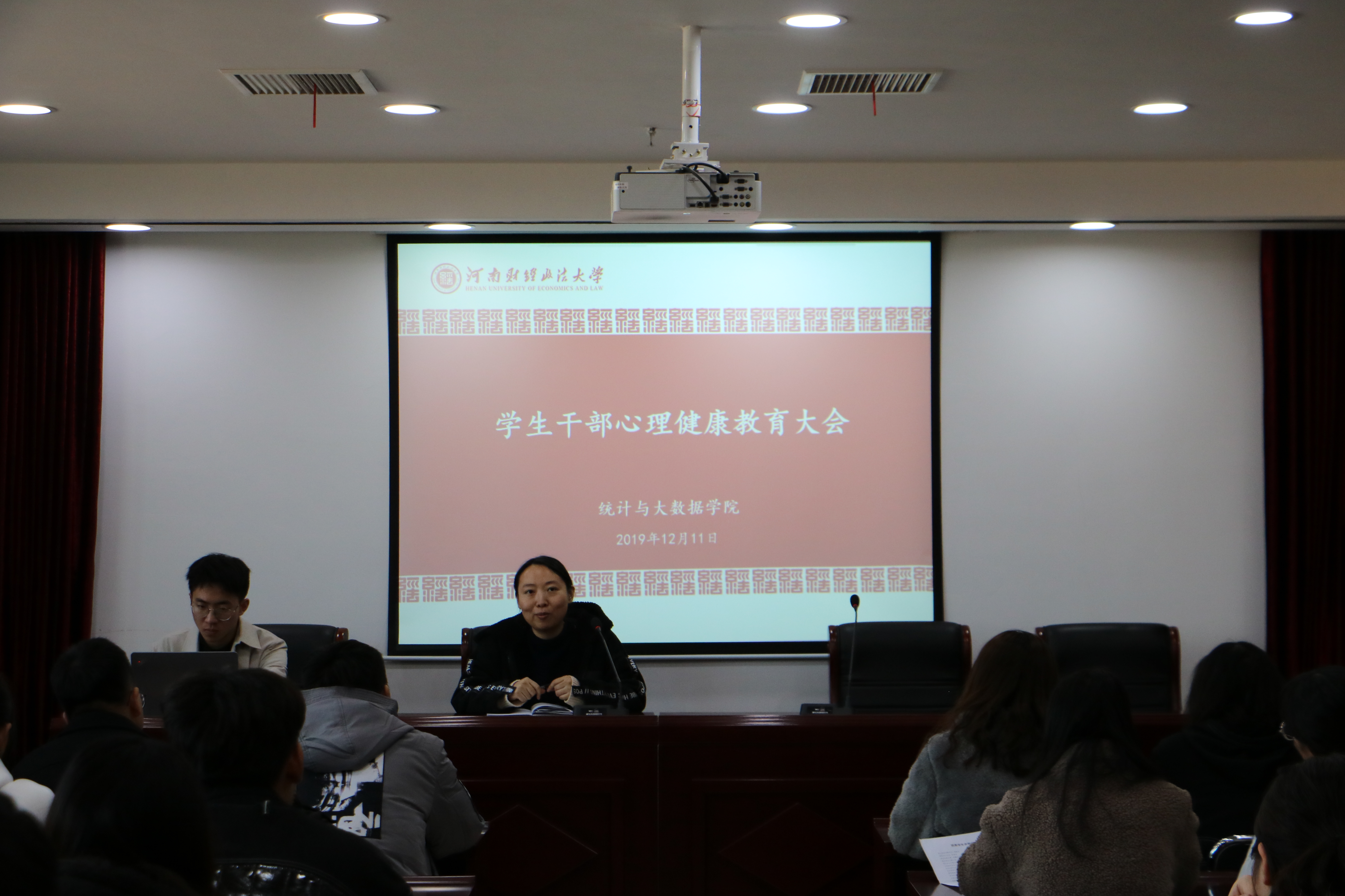 12月11日中午,公司于教学科研楼826室召开员工干部心理健康教育大会,团委书记郭粹与学院主要员工干部参加此次会议,郭粹主持会议。