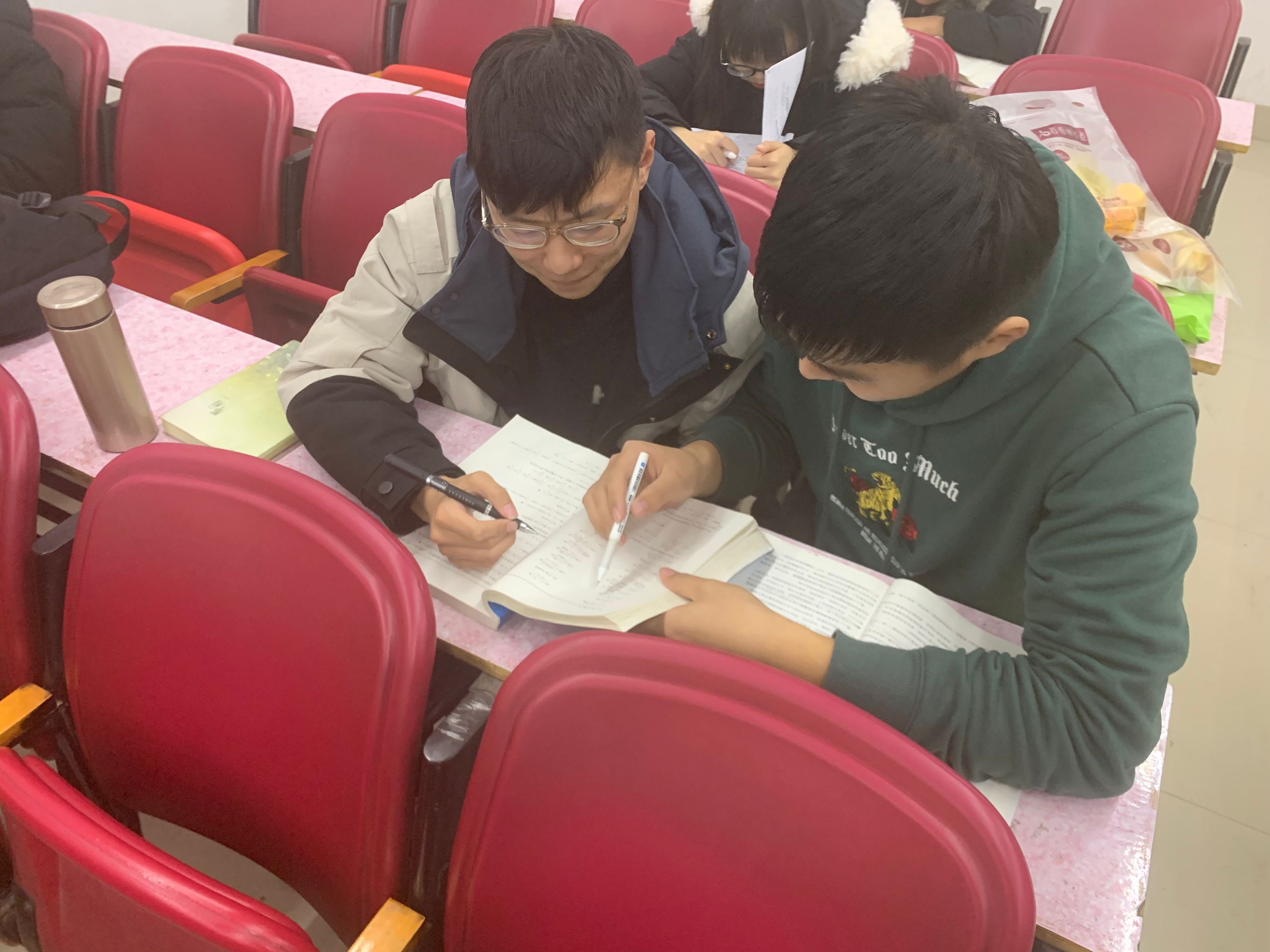 在少数民族“学习共进步”活动中,六位少数民族同学和六位志愿者参加,分为两组。由志愿者为少数民族同学补习共高等数学,数学分析,计量经济学等课程。在学业预警员工帮扶活动中,所有被预警员工自行寻找学习伙伴组成学习小组,活动开展以来,志愿者员工已多次为被预警员工补课。本次学业帮扶活动中,志愿者积极热情,被帮助员工认真思考,学习积极性得到很大提高,补课效果显著。