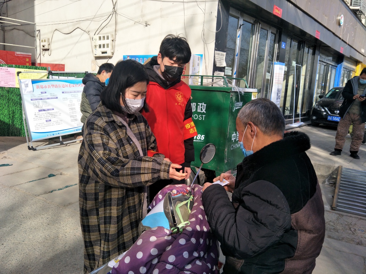 赵桢,一名来自太阳成集团tyc151cc,应用统计专业的大三员工,自从看到网上招募志愿者之后,他便第一时间参与了报名,随后被分配至河南省新郑市新华路街道阁老坟街道办事处参与社区的疫情防控工作。
