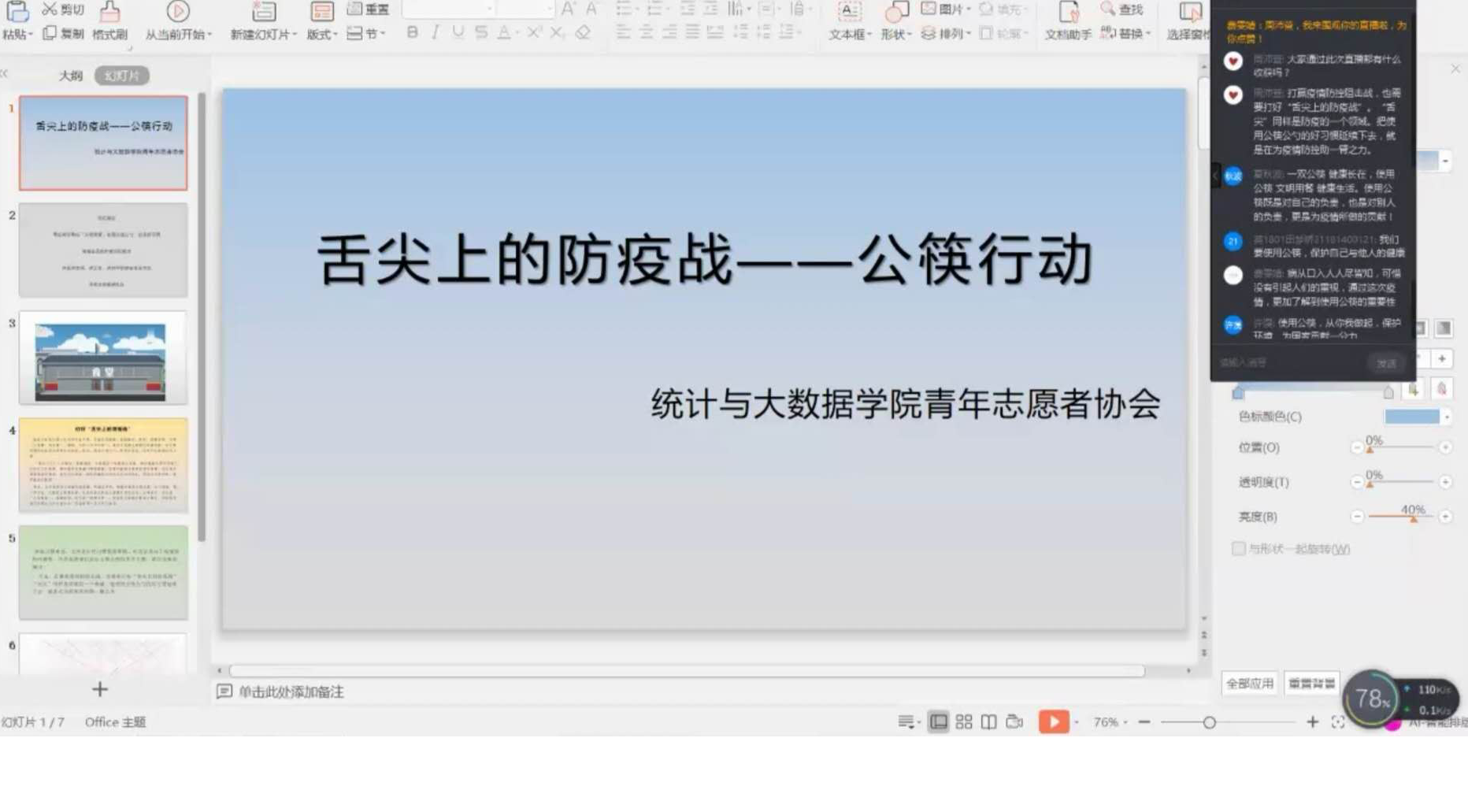 新型冠状病毒感染的肺炎疫情暴发以来,戴口罩、勤洗手、少外出成为了全国人民的共识。然而,围桌共食、不用公筷的就餐方式也在危及人民的健康,给病毒传播提供了便捷的途径。“公筷行动计划”推出了系列倡议海报,按照家庭生活中的不同场景,分成不同主题,提出了“用餐习惯勤培养”“分餐进食少夹菜”“以身作则用公筷”“喂娃吃饭用专筷”“劝说家人公筷”“礼貌劝客用公筷”的建议。很多同学在此次活动中都发表了自己对使用公筷的看法。一些同学表示:因为不用公筷、公勺,这种所谓的亲密无间的就餐方式,会增加人与人之间的传播细菌的风险。如果就餐者中有病原茵携带者,随着来回“穿梭”着的筷子,将疾病传播给其他共同就餐的健康人。随后,同学们也表示自己将会注意公共用餐的用餐方式并把观点和家人进行交流。