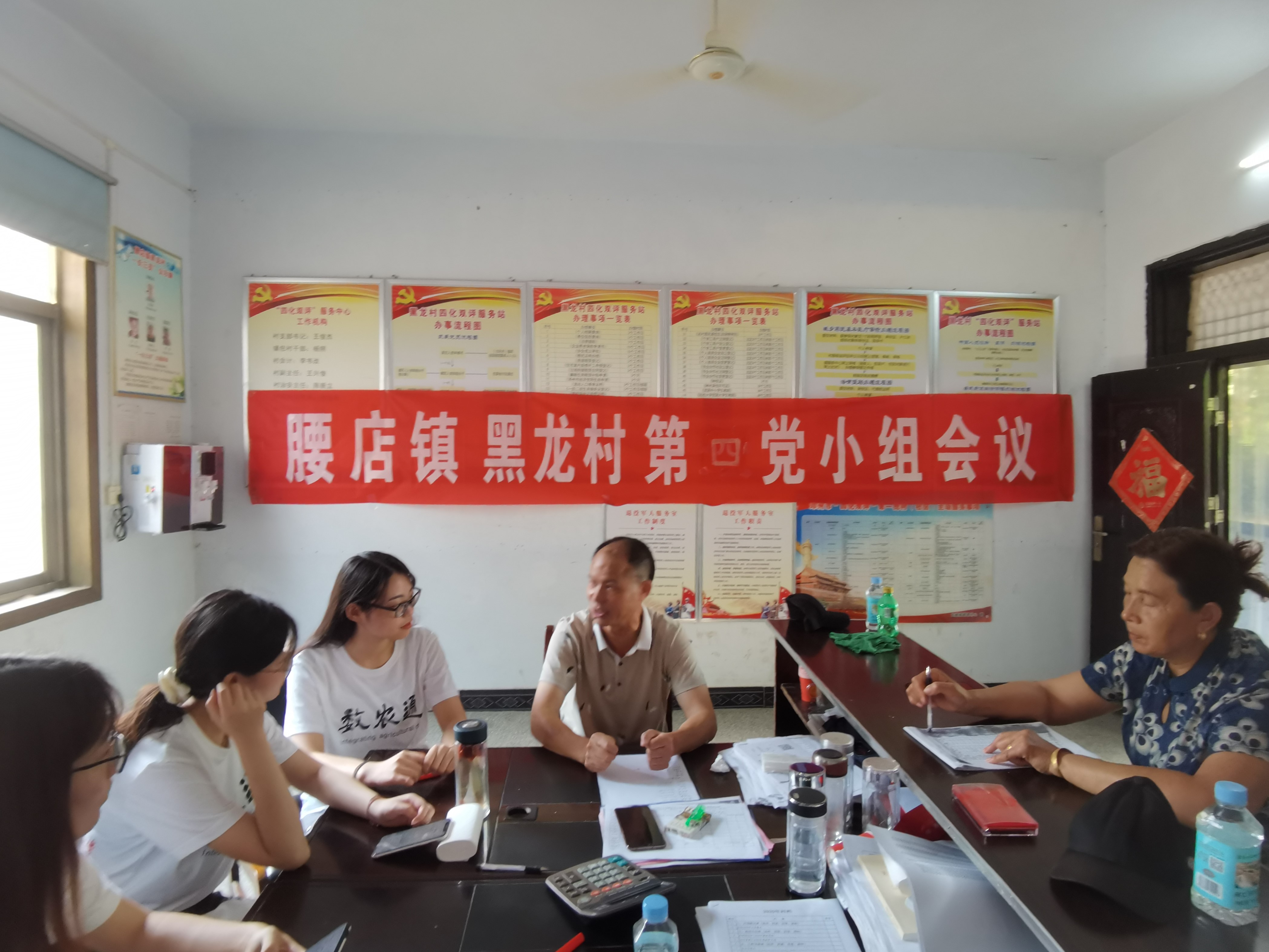 实践队员来到村委会办公室采访了黑龙村的村委书记王书记,据王书记介绍,黑龙村的机械化水平目前已经达到了一个较高的水平,农机合作社的小麦播种机、肥种植一体机等机械在农忙时全体出动,大大减少了农忙的时期与工作量,让老百姓在家就可以远程指挥秋收播种。“现在政策好了,国家扶持力度强了,不像以前农忙要还几个月,现在秋收加播种一个星期就够了。”王书记如是说。在实践队员问到虫害情况时,王书记跟实践队员反映,黑龙村的植保站采用一喷三防的形式,就是在特定时期,植保站派出无人机进行喷洒式除虫,大大降低了农作物的病虫害率。对于农作物的销售,实践队员了解到,黑龙村的销售主要占据地理优势,靠近省道,新野等周边的县市会在农收后来收麦收花生,农民在家就可以将自己的农作物卖出去。在应对特殊的自然状况时,黑龙村也有自己的防御系统。邓州市地处中原,最多的特殊自然状况就是降雨过多或降雨过少。在降雨多时,黑龙村的每一户地都有地头沟用于排水,这些水就会顺着沟流入湍河;在降雨较少时,每一户地里都有一口深水井用于灌溉,还有植保站的无人机浇灌,所以即使在极端天气下对农作物的收成影响也不是特别大。