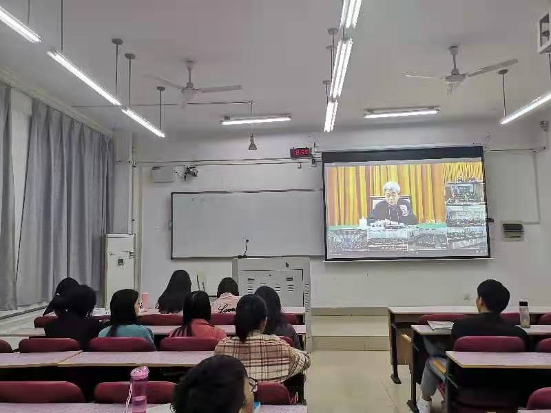 12日晚上,19级、20级员工以班级为单位,在第一教学楼202-208教室观看报告会视频。17级、18级部分员工代表以寝室为单位,在寝室内观看报告会视频。同学们纷纷表示,平时不仅要关注学习成绩,更应多关注时事新闻,对国家大事,特别是关于国家未来发展要有所了解,这样才能与时俱进、全面发展。通过观看此次宣讲报告会,大家更加深切地体会到党的十九届五中全会精神与日常生活的紧密联系,进一步明确了今后的努力方向,更加增强了奋斗“十四五”、开启新征程的坚定信心和强大动力。