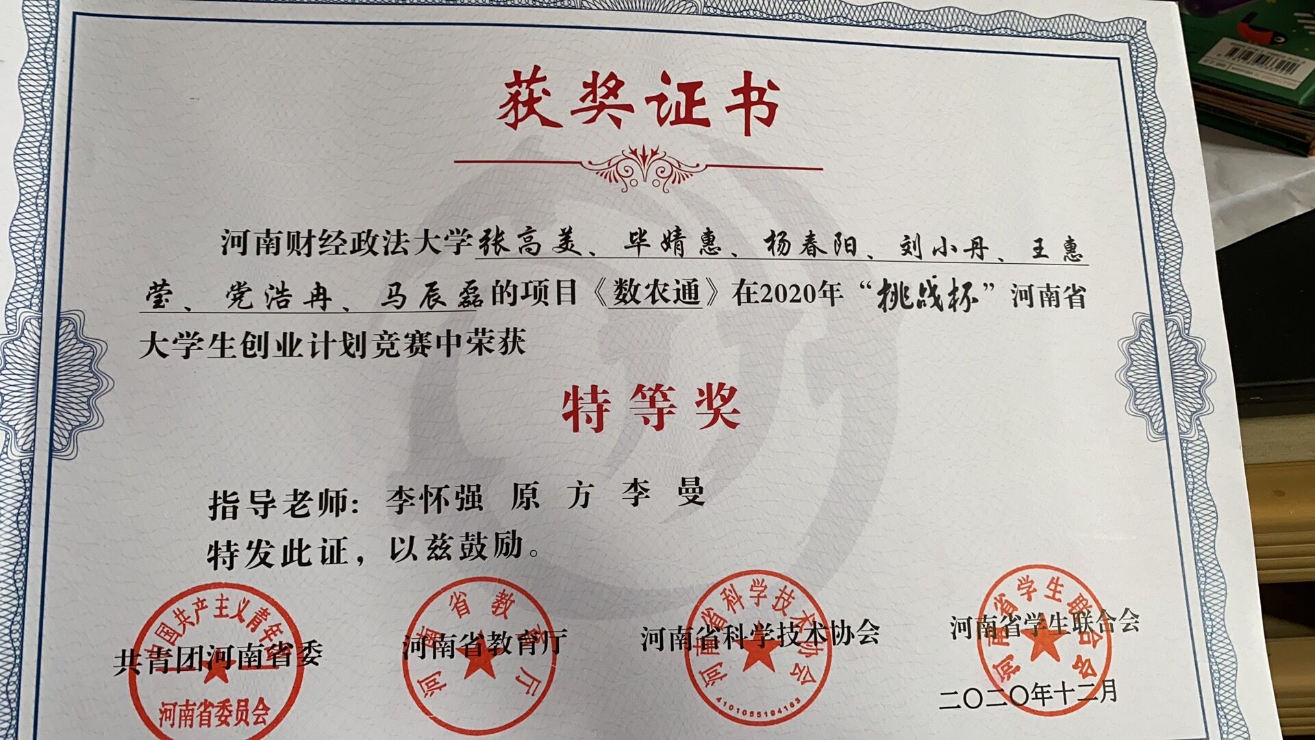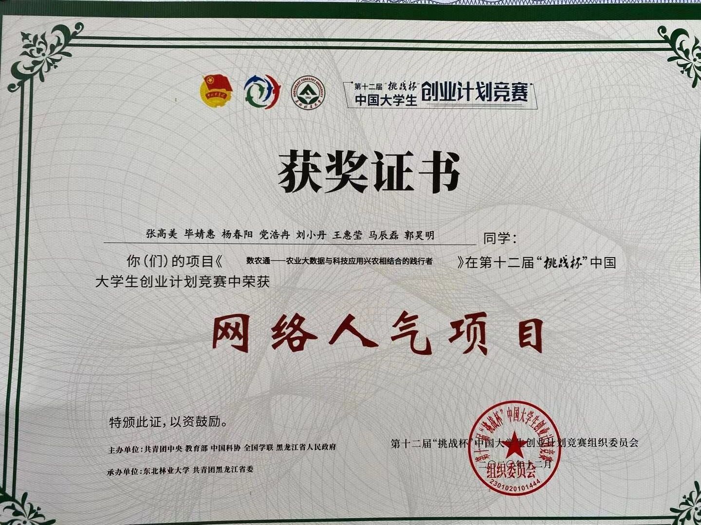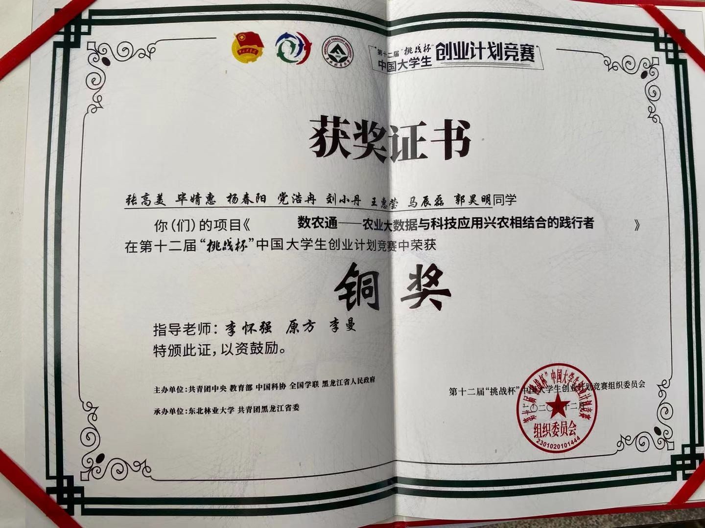 公司“数农通”项目在2020年“挑战杯”河南省老员工创业计划竞赛中荣获特等奖。与此同时,该项目在第十二届“挑战杯”中国老员工创业计划竞赛中荣获铜奖,还获得了“网络人气项目”荣誉称号。